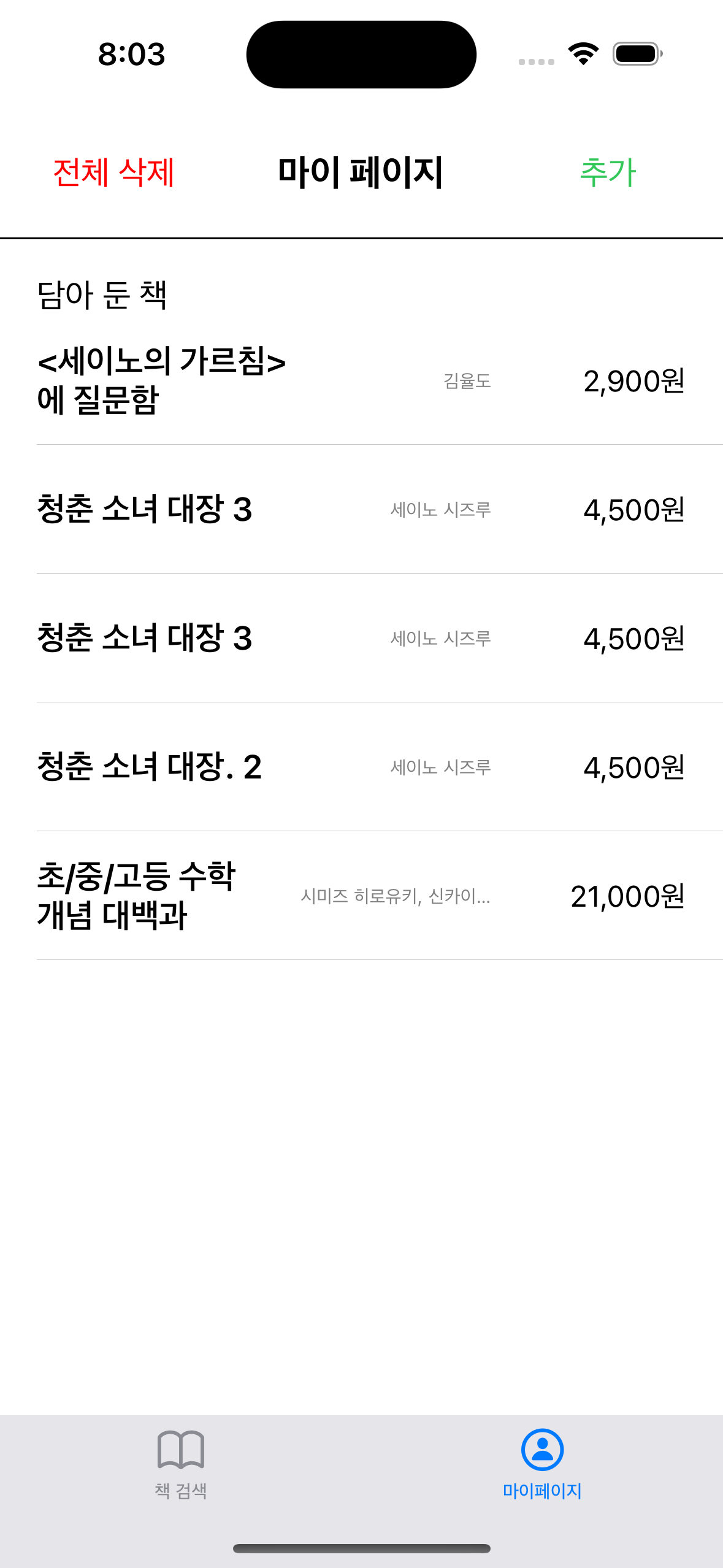 책 리스트 전체 삭제 , 부분 삭제 구현
