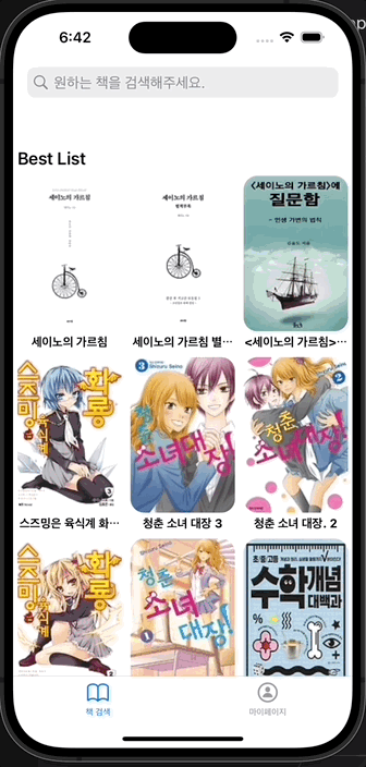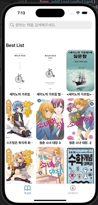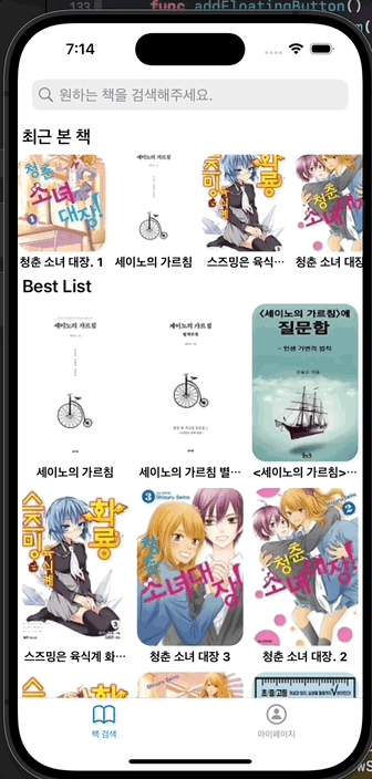 최근 본 책의 데이터를 어떻게 전달할까 많이 고민하다가 이 내용은 코어데이터에 저장되어 있는 것 보다 휘발성이 있는 편이 나을 것 같다고 생각해 그냥 데이터만 전달하고 앱을 다시 키면 초기화 할 수 있도록 구현했다.
