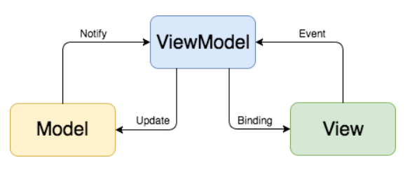 MVVM은 Model , View , ViewModel 로 나눠져 관리하는 디자인 패턴이다. 화면을 만드는 코드와 데이터를 처리하는 코드를 분리하는 것이 MVVM의 핵심이며, 데이터를 전달하는 방식으로 View가 ViewModel 값을 관찰하여 변화를 반영하게 된다.