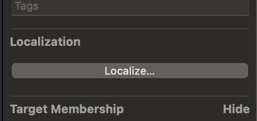 이 파일을 선택하면 이렇게 파일이 생성되는데 생성되는 파일 오른쪽에 Localization을 선택하면 영어 혹은 한글을 선택할 수 있다.
