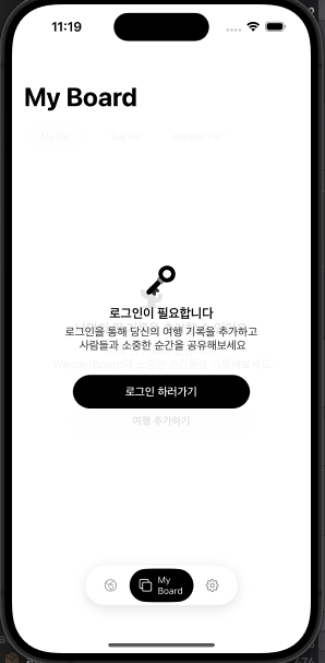 먼저 루트 뷰 컨트롤러를 변경하여 로그인 시점이 아닌 WanderBoard 로 바로 들어올 수 있도록 구현하였다.