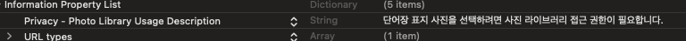 먼저 Info.plist파일에 안내가 나갈 문장을 넣어준다.