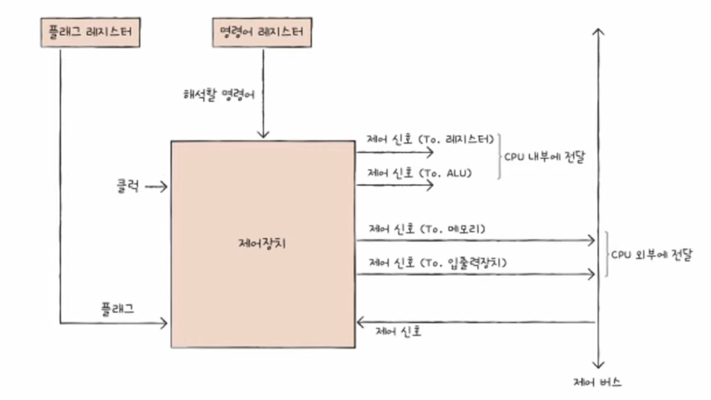 시스템 버스 중 제어 버스로부터 제어 신호 받아들임