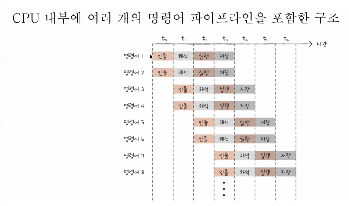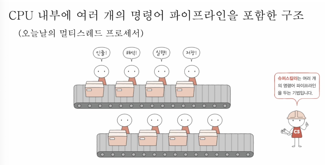 CPU 내부에 여러 개의 명령어 파이프라인을 포함하는 기법이다.