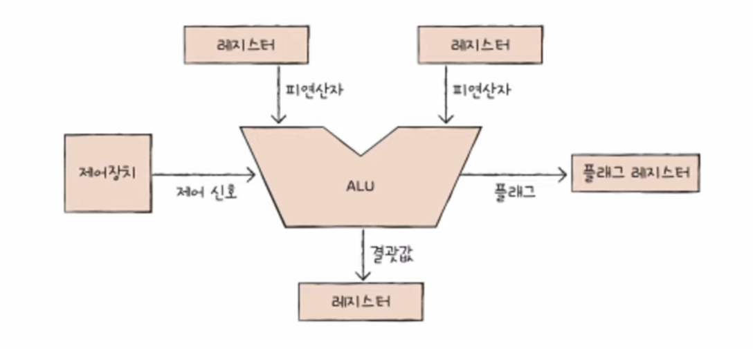 연산을 담당하며, 연산결과를 레지스터에 내보낸다.