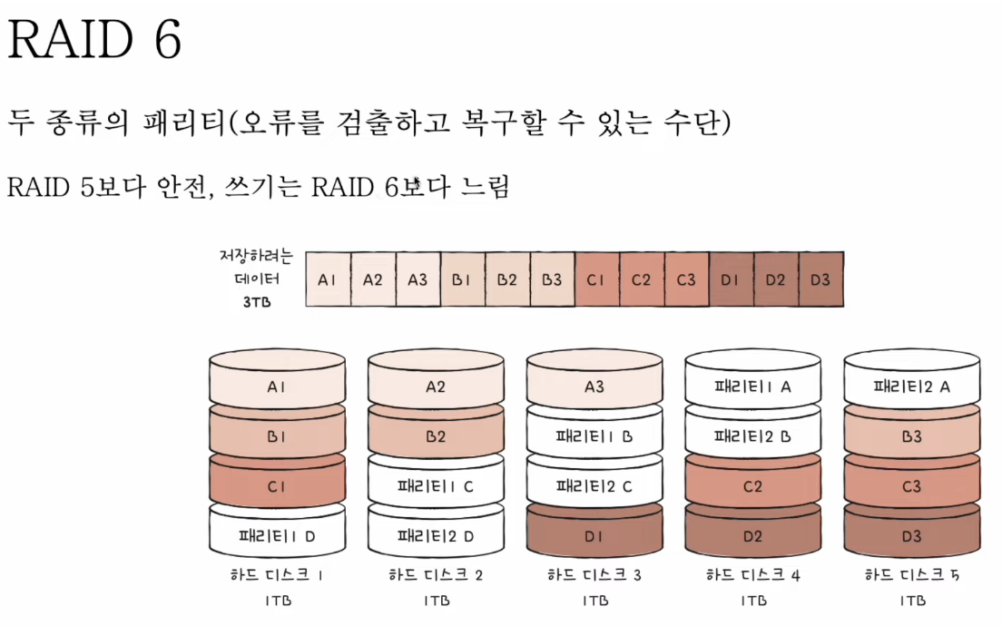 여러 물리적 보조 기억 장치를 하나의 논리적 보조 기억 장치처럼 사용하는 기술이다.