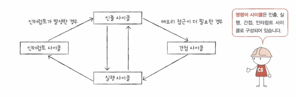 - 인터럽트 사이클 : 인터럽트 발생 시 처리한다.