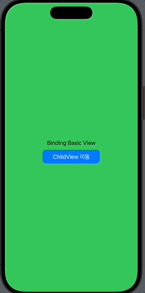 보면 현재 부모뷰에서 가지고 있는 backgroundColor와 title이 차일드뷰에서 값이 변경되어야 하므로 동일하게 사용하고 해당 내용이 부모뷰와 연결될 수 있도록 Binding을 해준 상태이다.