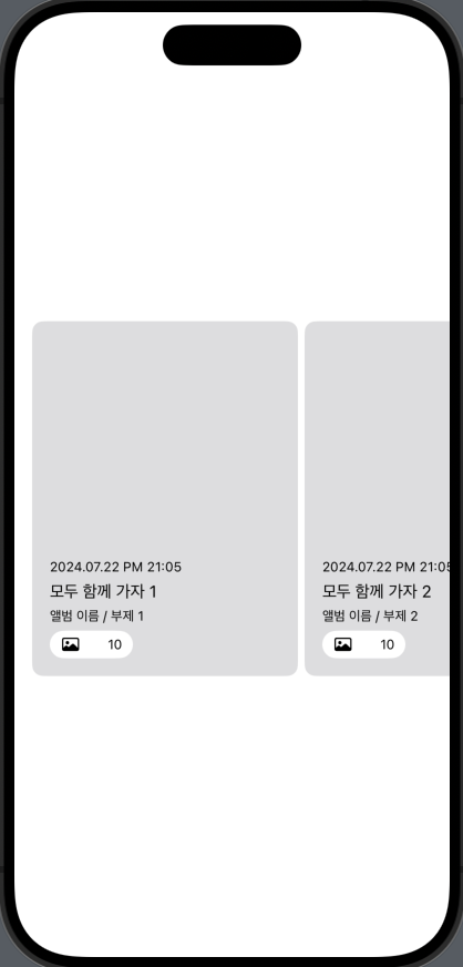 다음은 최근 공유 앨범의 목록을 테이블 뷰처럼 보일 수 있도록 구현하였다.