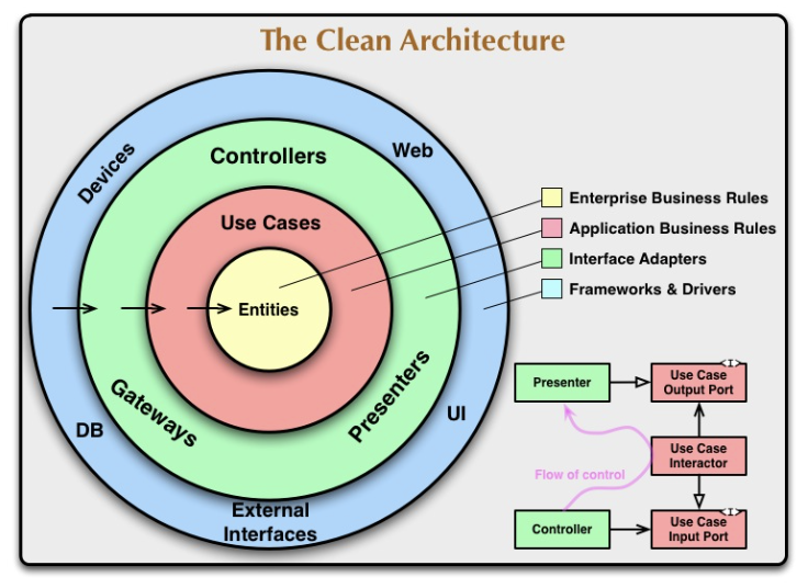 이러한 의존성 규칙 덕분에 내부의 핵심 비즈니스 로직은 외부 변화에 영향을 받지 않고 시스템의 유연성과 유지보수성이 높아진다.
