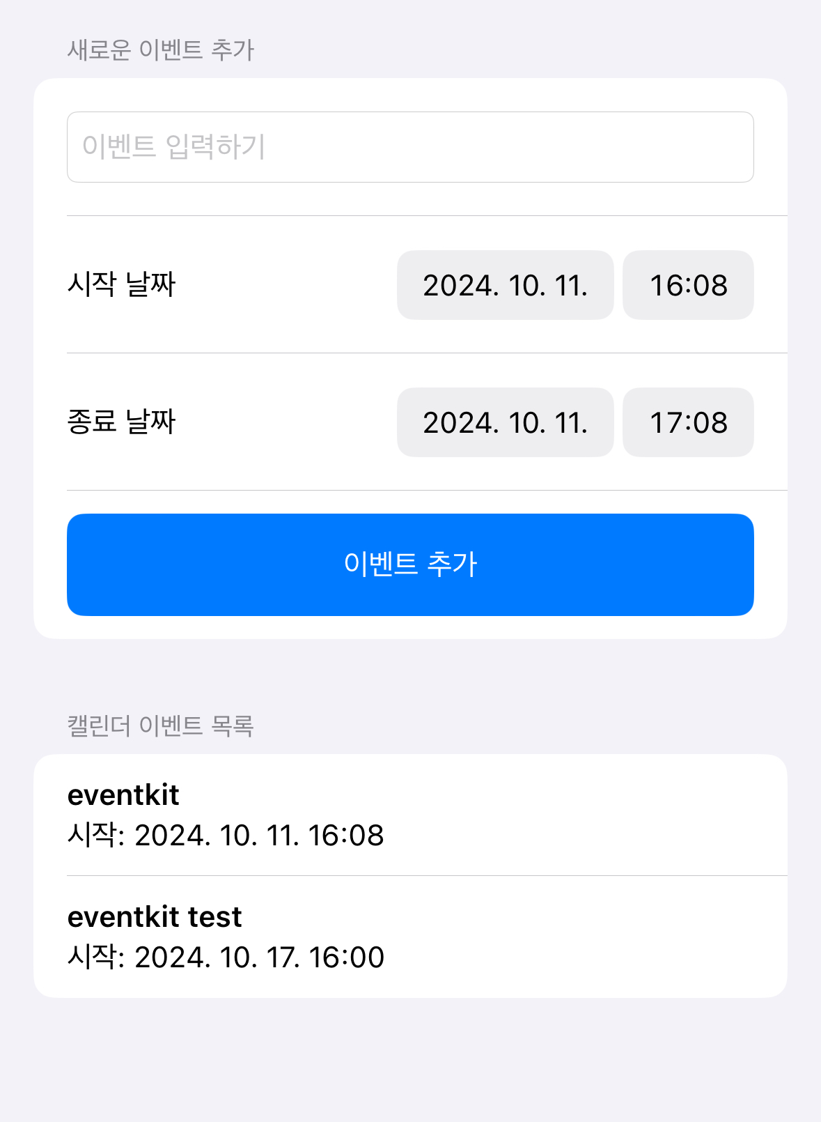event.calendar = eventStore.defaultCalendarForNewEvents // 새 이벤트가 추가될 기본 캘린더