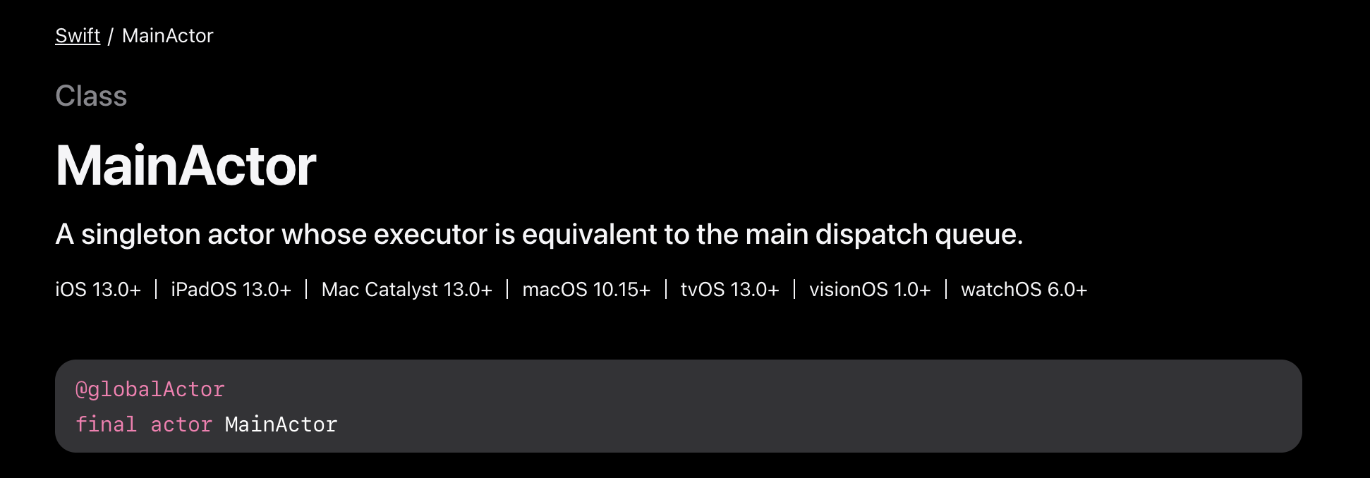 이런 문제를 피하기 위해서 보통 DispatchQueue.main.async를 사용했지만, Swift의 MainActor를 사용하면 더욱 간결하고 안정하게 사용할 수 있게 된다.