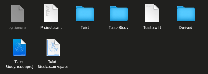 를 명령어 입력하게 되면 변경된 내용을 바탕으로 Tuist 에서 Workspace를 만들어 열어준다.