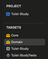 이와 같이 디펜던시 부분에 사용할 모듈을 설정해준 뒤 저장 후 tuist generate를 통해 xcode 프로젝트 파일을 업데이트 해주면