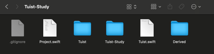 처음 파일이 만들어지면 사진과 같이 이런 구조가 생성되게 된다. 여기서 핵심은 Project.swift 파일인데 이 파일은 Xcode 프로젝트의 타겟, 의존성, 빌드 설정 등 Swift 코드로 선언하게 해주는 역할을 담당한다.