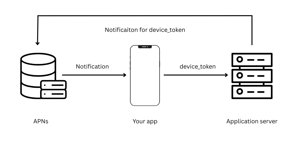 그렇게 되면 서버에서는 이 디바이스 토큰을 바탕으로 APNs에 디바이스 토큰과 전달할 메시지를 보내게 되고 APNs에서는 해당 디바이스 토큰을 가진 디바이스에 서버에서 전달해준 데이터를 전달하게 되는 방식!