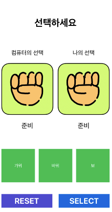 SELECT 버튼을 클릭했을 경우, 이전에 저장했던 컴퓨터의 선택 값(comChoice) 내가 선택한 값(myChoice)을 각각
