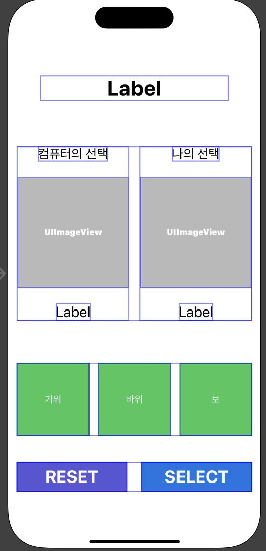 앱이 실행하자 마자 가장 먼저 실행되는 viewDidLoad 영역에는 메인 레이블과 컴퓨터, 나의 준비 상태를 표시하는 이미지와 텍스트를 삽입한다.