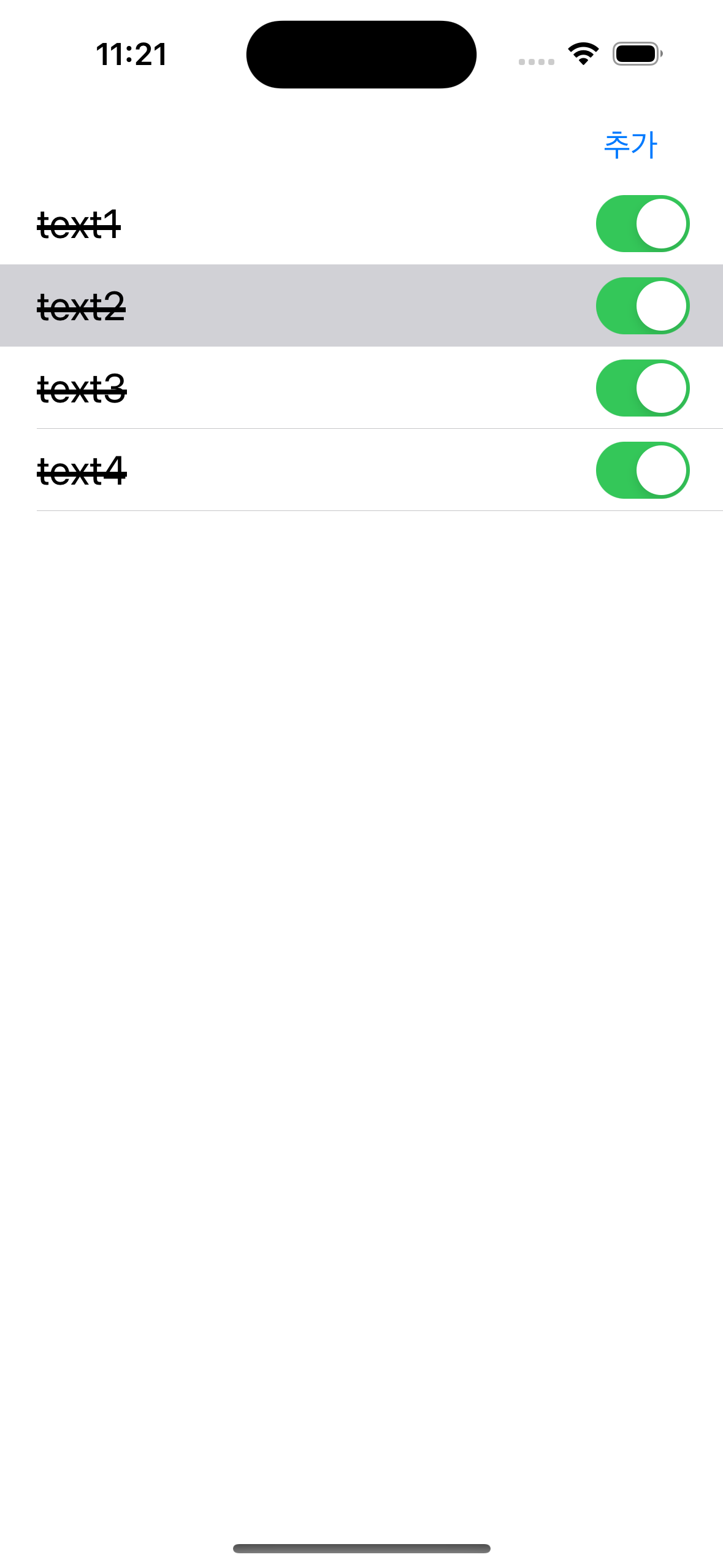 다음은 스위치 버튼을 누르면 Cell 내 취소선이 들어갈 수 있도록 기능 구현을 해줄 차례