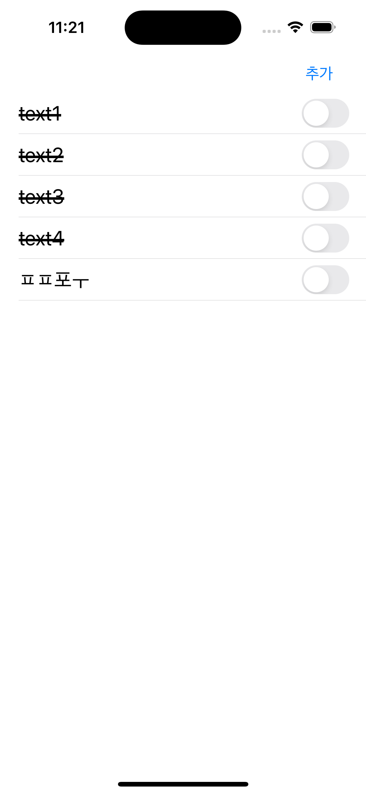 이렇게 작성한 후 스위치를 토글하면 이렇게 취소선이 나오게 된다!