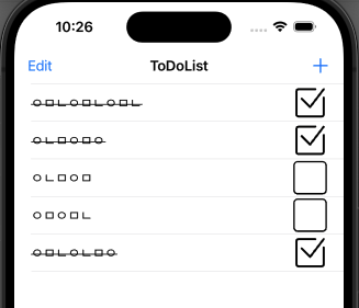 먼저 주어진 예제, 다른분들의 하는 작동 방식은 스위치를 토글하였을 때 변하는 isOn의 Bool 값을 토대로 if 문을 사용하여 조건을 주는 방식으로 이뤄졌고 나는 완료 스위치가 아닌 완료 시 버튼을 클릭해 체크박스가 체크되면서 취소선이 그어지는 방식을 원해 그렇게 구현을 하였다.