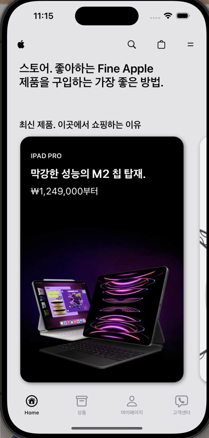 먼저 이전에 만들었던 홈탭 내 조금 더 컨텐츠 및 볼륨감을 넣어주고 싶어 마이페이지 내 코드로 구현한 상단 탭을 그대로 가져와 콘텐츠를 조금 더 늘리는 과정이 있었고 그 과정에 있어서 이전에 만들었던 홈 탭 내 셀의 위치, 클래스 등등 내가 왜 이렇게 만들었지 하는 구조적인 부분이 있어서 거의 그냥 갈아 엎어서 새로 만들었다.